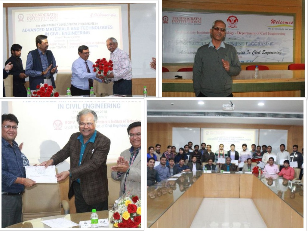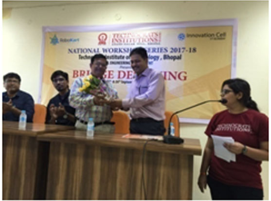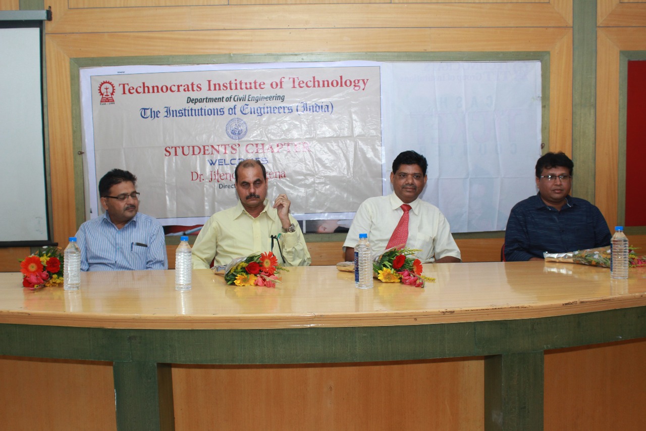 Speakers were felicitated by Bouquet, as per the tradition of Technocrats Institute of Technology, Bhopal.After the welcome address by Dr. Shashi Kumar Jain, the program was graced by the speech of Er. Suneel Joshi, wherein he spoke about the importance and benefits of becoming a member of professional bodies. He explained that hard work, passion, discipline, and persistence are key requirements of the journey towards career making. He described the need for giving attention to studies, practical aspects of learning design & design softwares, estimation process, while studying in engineering colleges; this will help you earn money, no matter the small amount to begin with. He suggested that students should take benefit of these societies; they will surely help if one is keen and dedicated. He advised students to drop ego while learning things for career building.