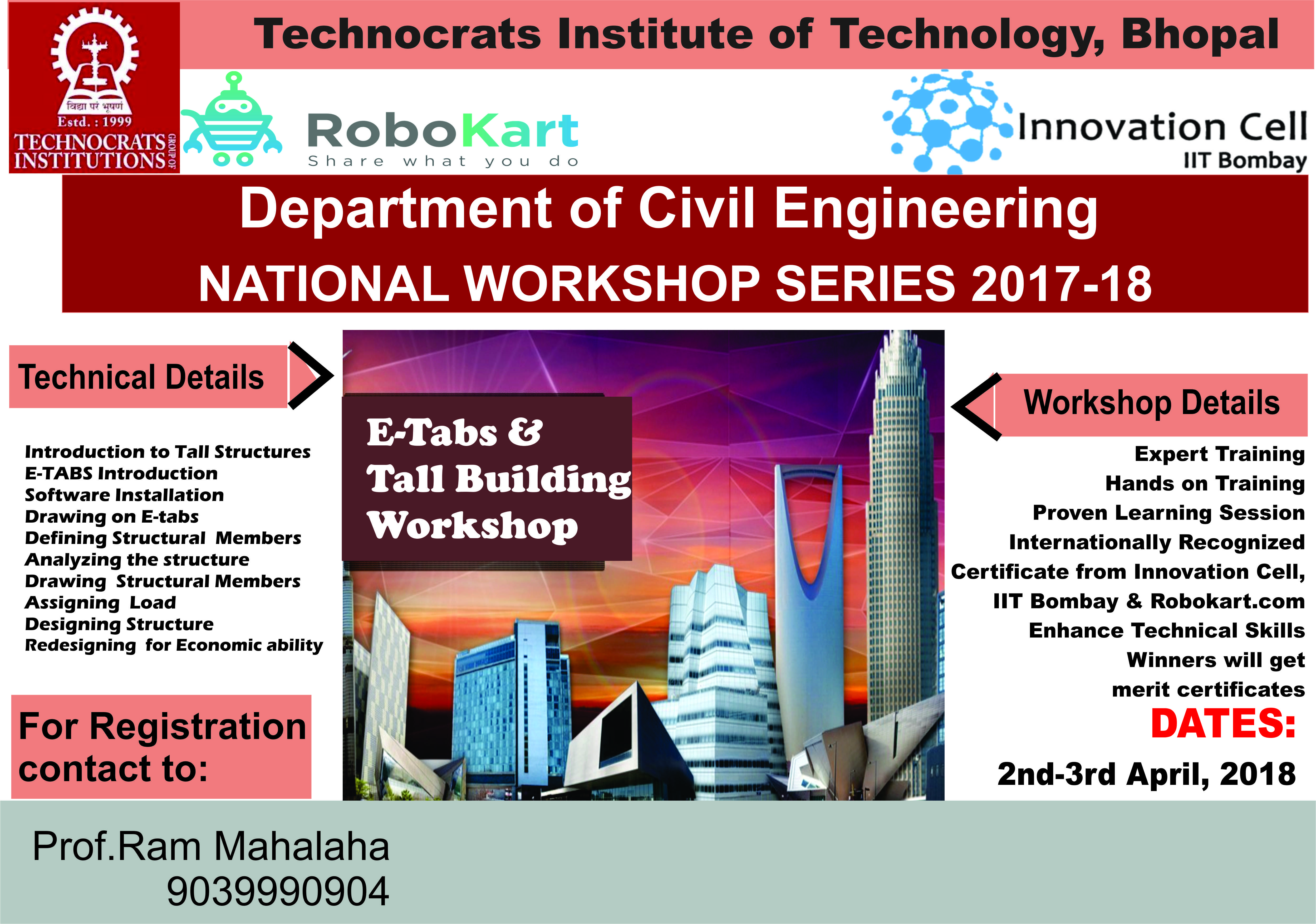 Civil Engineering virtually touches all facets of our life. Over the years, many specializations have developed are catering to the special needs of the projects such as geotechnical engineering, public health engineering., hydraulics, structure, highway engineering, bridge engineering, earthquake engineering, construction planning & management, environmental engineering, Irrigation engineering. The country is undergoing through massive expansion of infra-structure creating thousands of job opportunity for civil engineers. Realizing the growing need for civil engineers, this department at TIT, Bhopal was established in the year 2012. The department is having well qualified and experienced faculty for teaching diverse subjects of civil engineering. The yearly intake is 120. We have well- equipped labs such as Basic Civil Engineering & Engineering Mechanics Lab, Construction material testing lab, Surveying Lab, Fluid Mechanics Lab, Strength of material lab, Engineering Geology Lab etc.